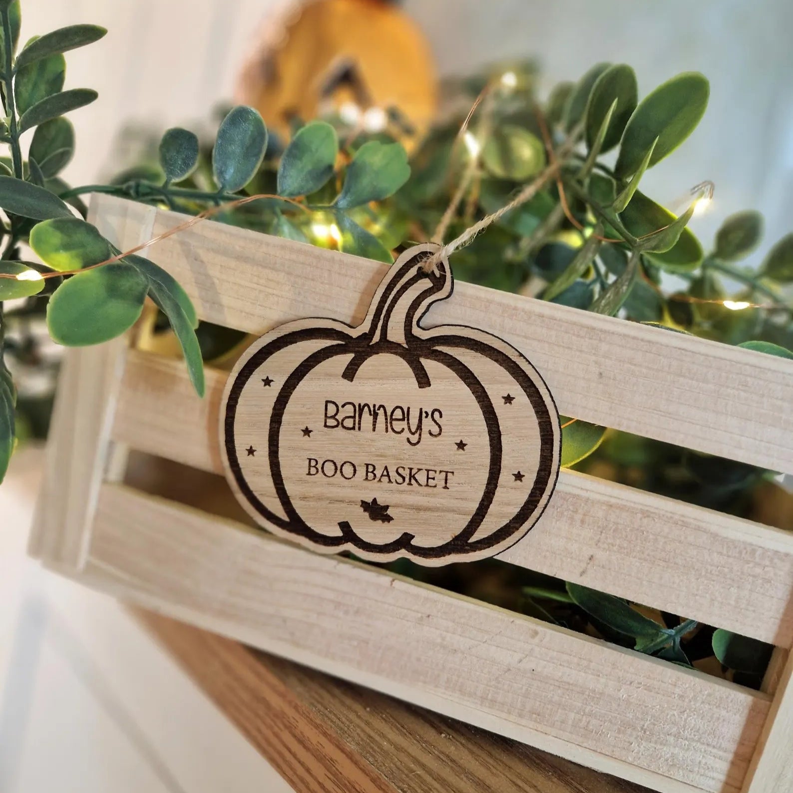 Add a dash of Halloween magic to every gift with this adorable pumpkin-shaped tag! Made from smooth, natural wood and laser-engraved with any name you choose, it turns ordinary baskets and crates into spooky-sweet keepsakes.