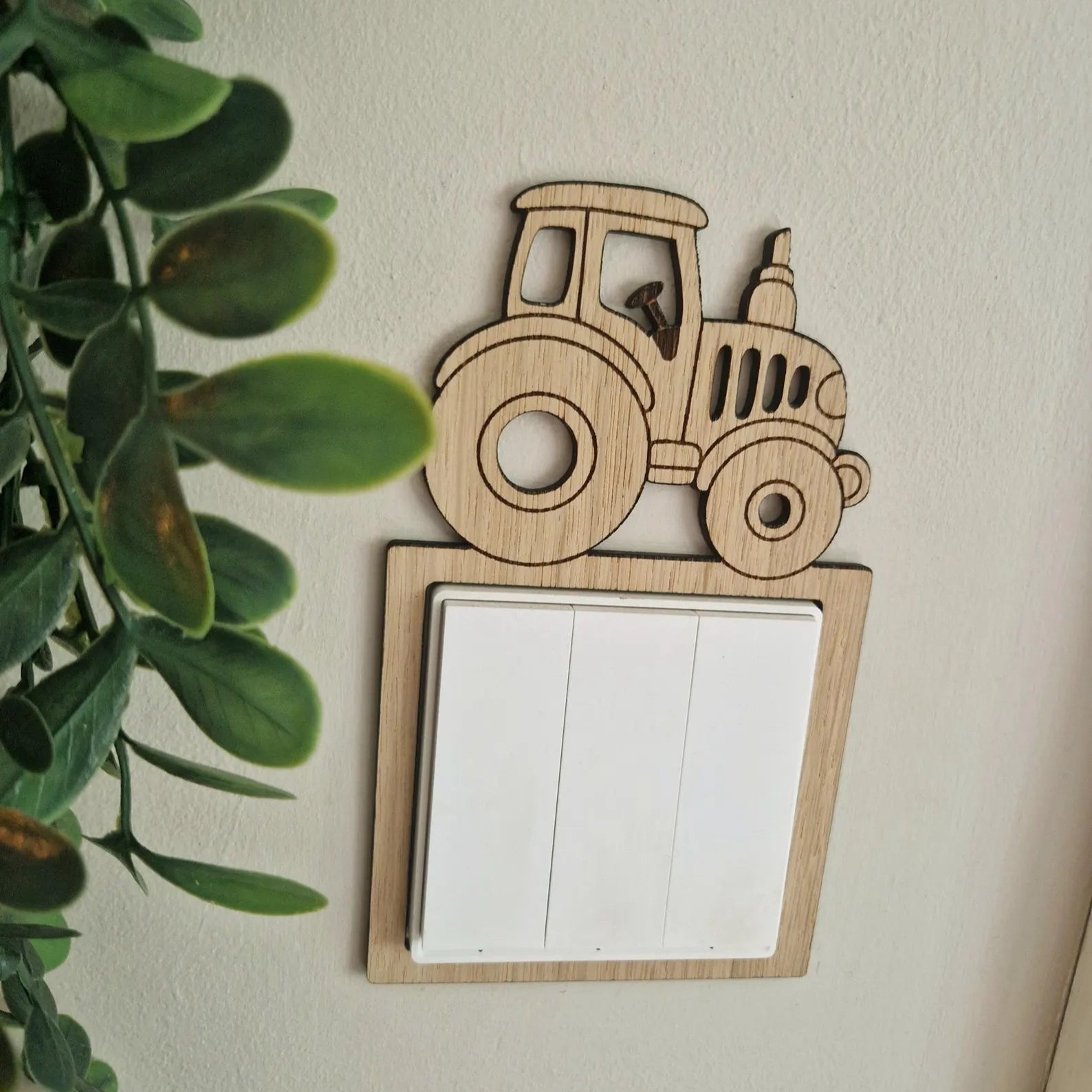 Our fun and eye catching Tractor light switch surround will add a charming touch to a little ones Nursery or Bedroom.